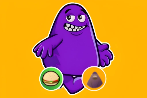 Help Grimace escape the giant clown shoe! Collect Grimace coins to break platforms, hamburgers to push away the shoe, and avoid small shoes to maintain speed.